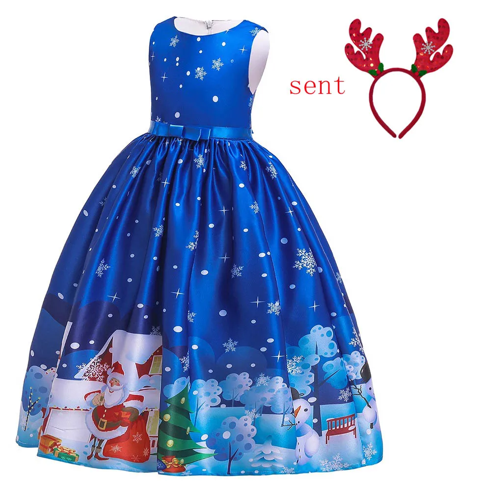 Длинное платье для девочек 4-14 лет, с принтом в виде Санта-Клауса