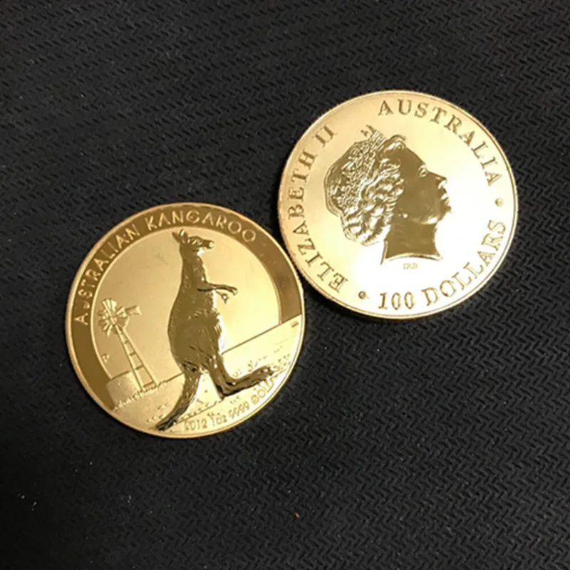 5 шт., Немагнитный значок австралийского Kangroo 2012, 24K, из латуни с покрытием из настоящего золота, 32,6 мм, Коллекционная монета с изображением Елизаветы