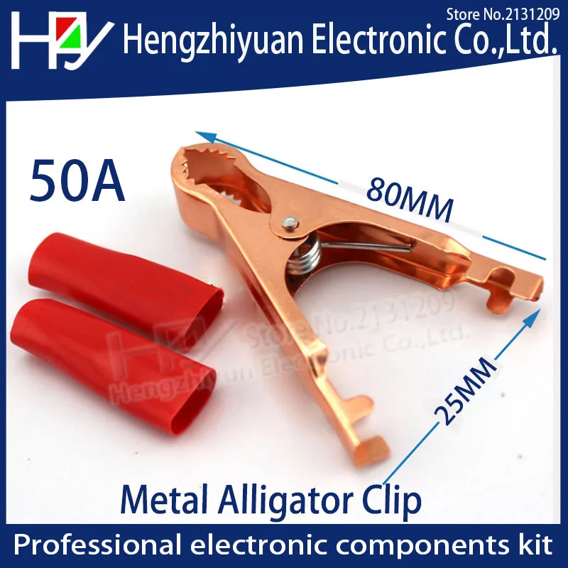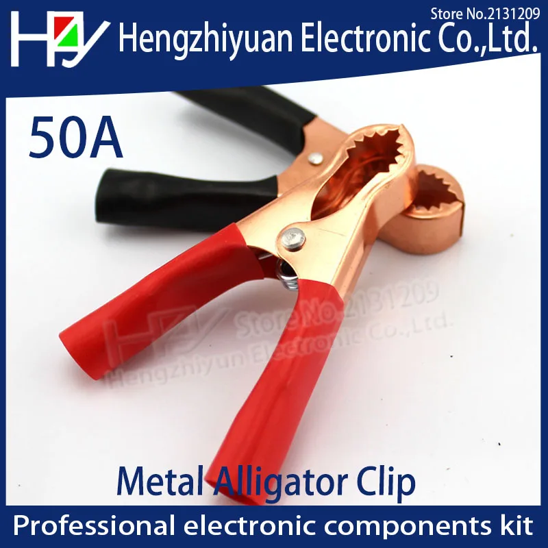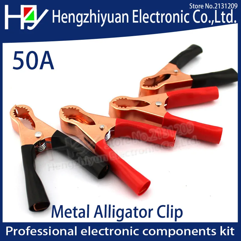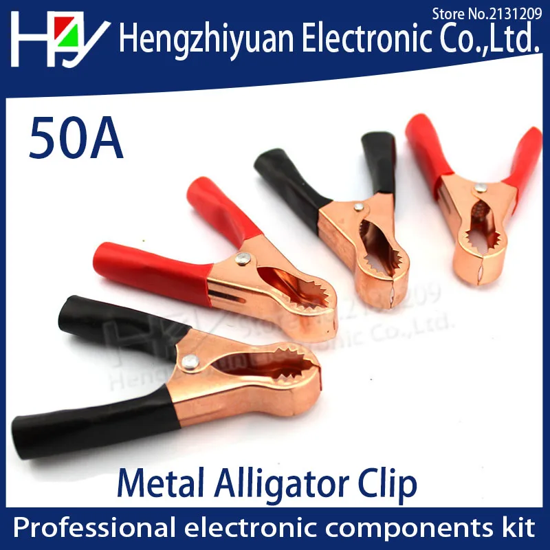 Зажимы-крокодиловые, красные и черные, 50 А, 80 мм