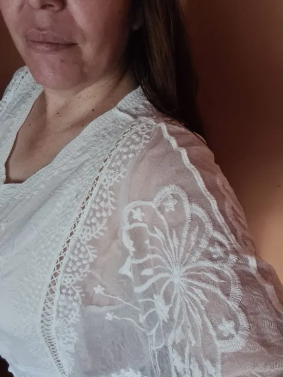 Блузка очень красивая, мне нравится. Повреждения не указаны в описании материала, который пришит, нет также указанных размеров в см в обхвате груди и талии. Такой же размер M, L, XL не достаточно. Благодарим Вас за доставку в zamówilam 7 февраля otrzymalam 25 февраля. Всего наилучшего.