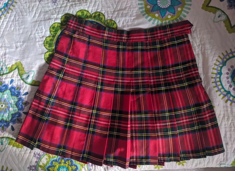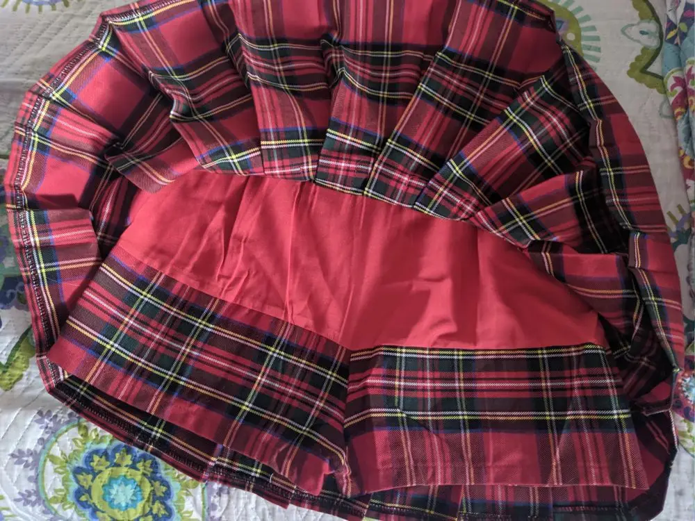 качество юбки и ткани хорошее, но абсолютно не соблюден рисунок и из-за этого юбка выглядит дешево и нелепо, я вообще сначала подумала что у половины юбки цвет другой, но это из-за того что вся клетка во внутрь защита и красный цвет преобладает