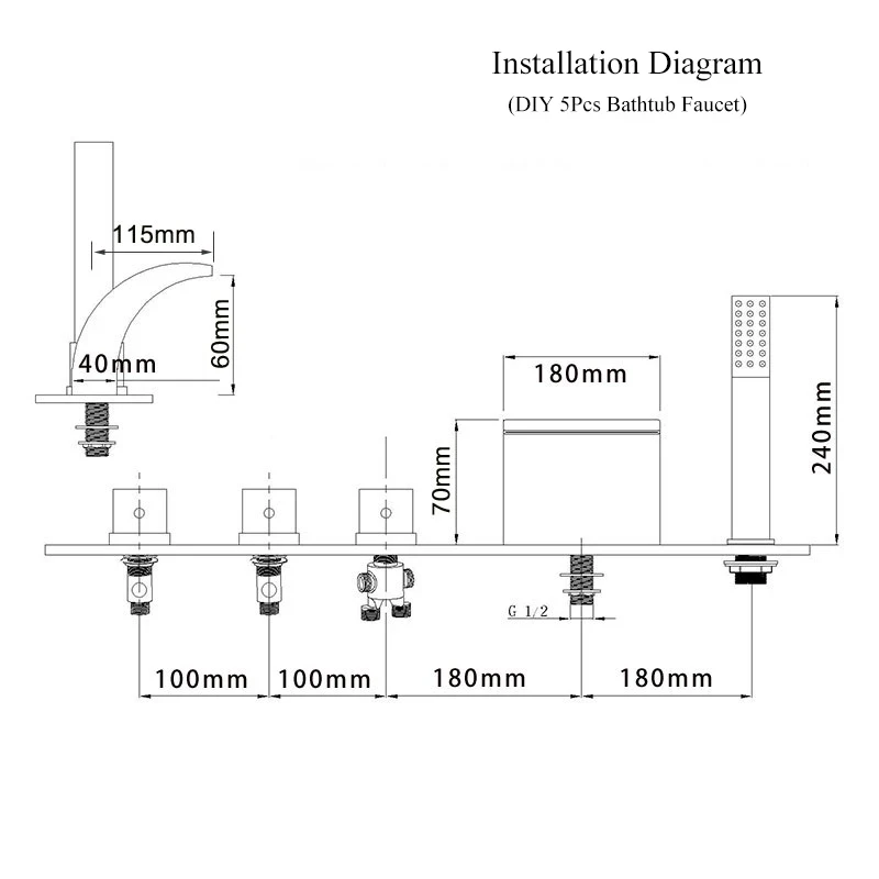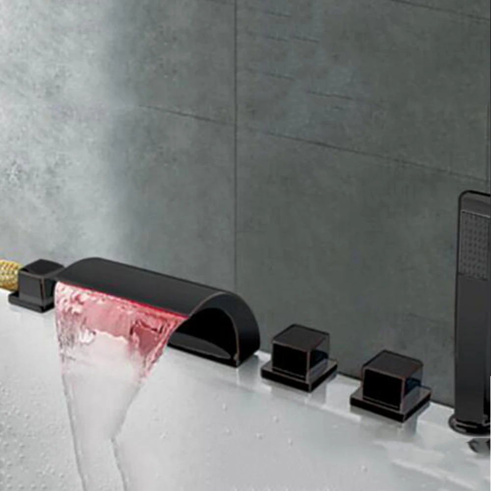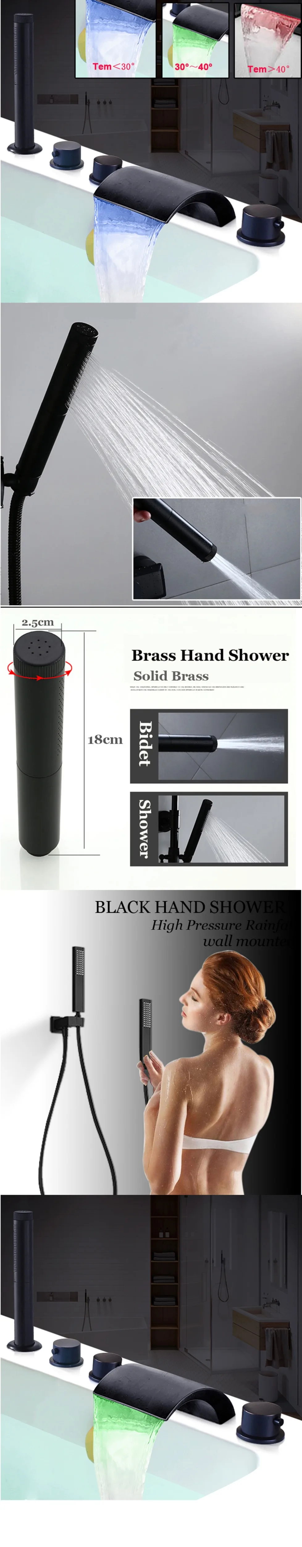 Смеситель для ванной ORB, латунный светодиодный кран Водопад, широкая ванна, для раковины, ручной душ