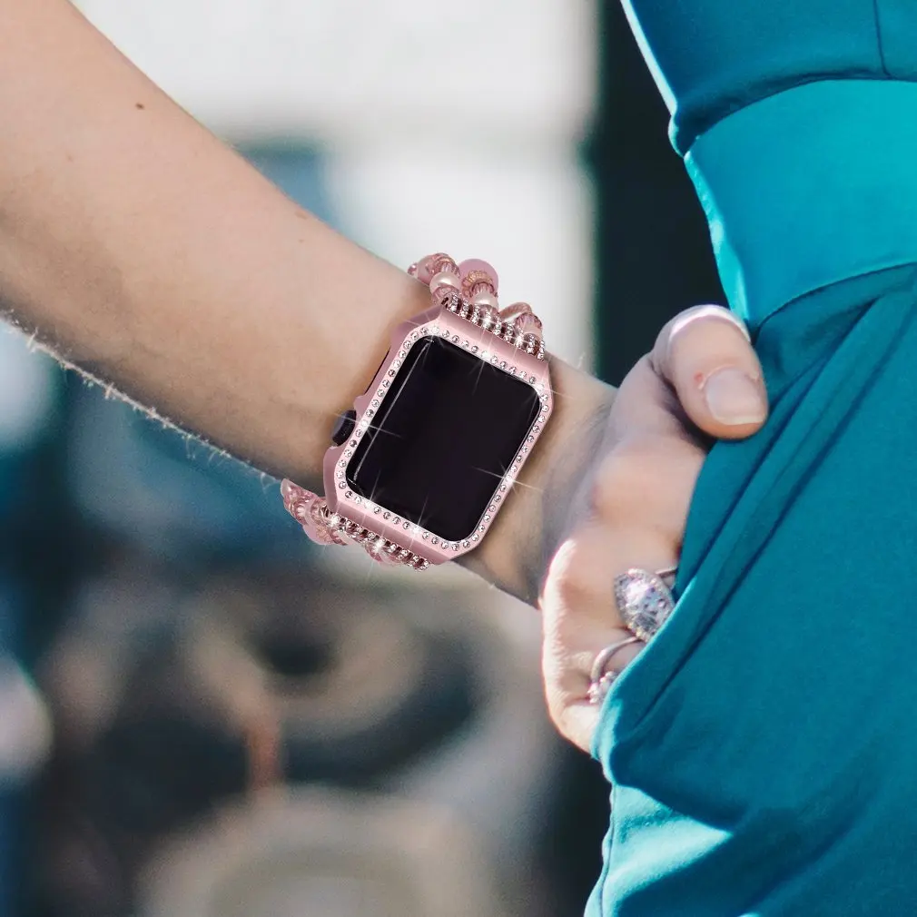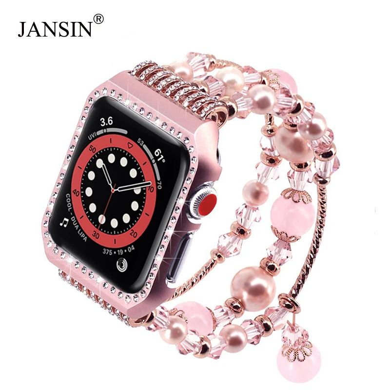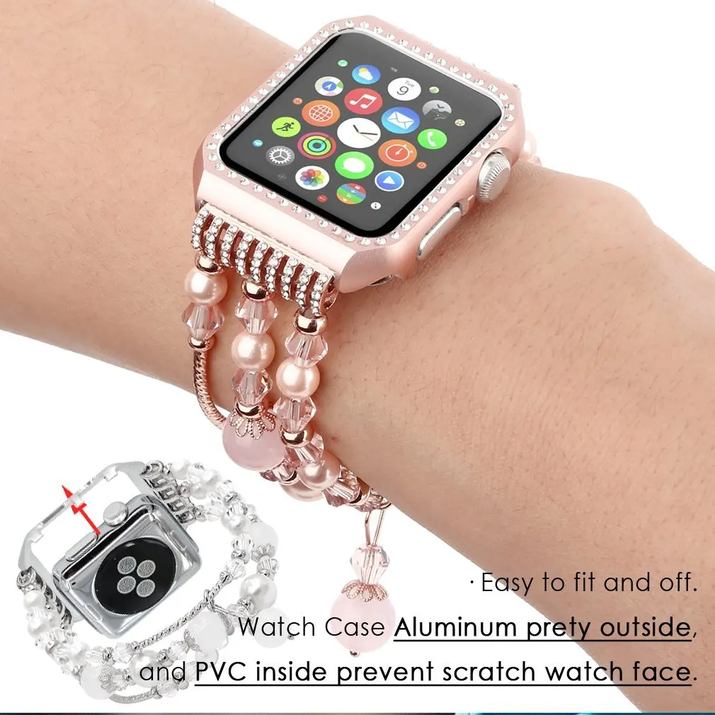 Металлический Алмазный чехол + ремешок для Apple Watch Series 6 SE 5 4 3 2, браслет для женщин, сменный ремешок для iWatch 38 мм 42 мм 4044 мм