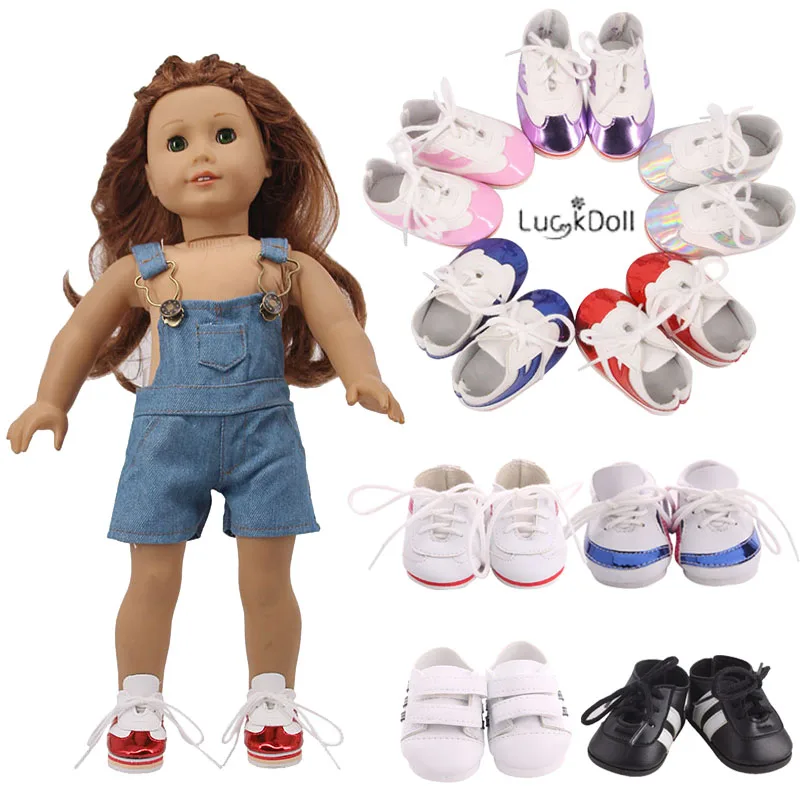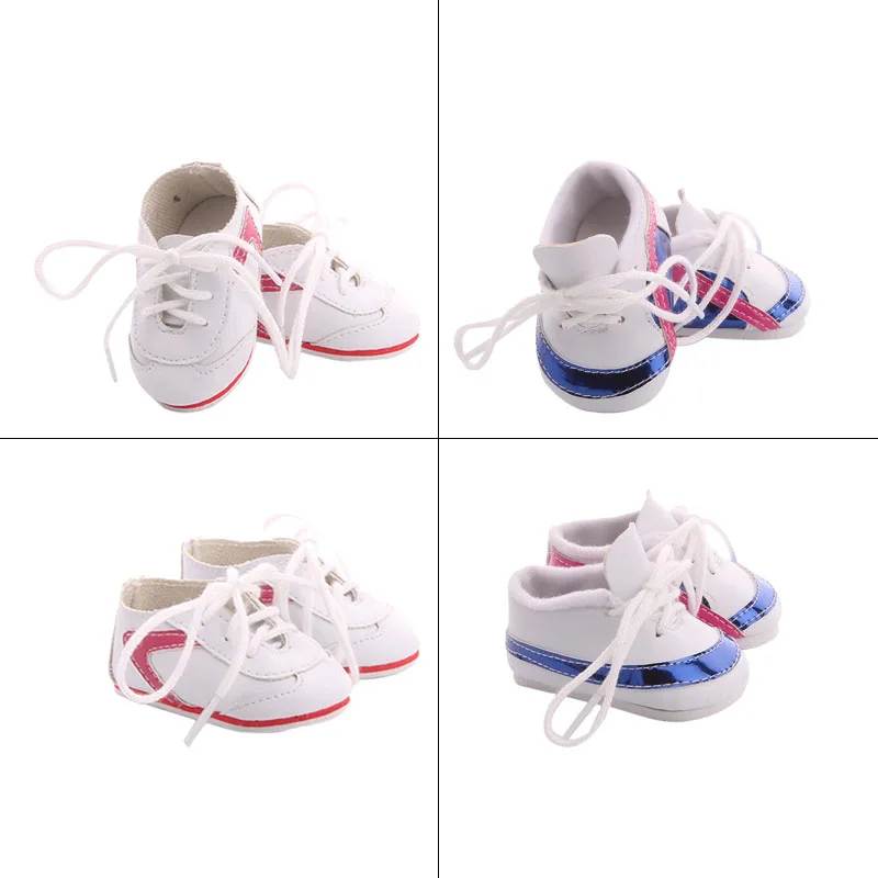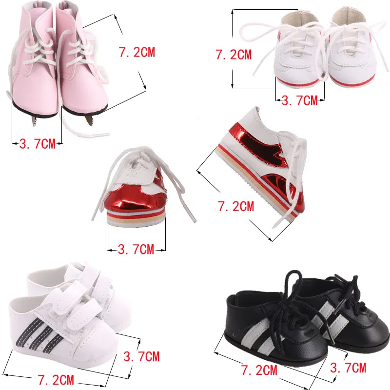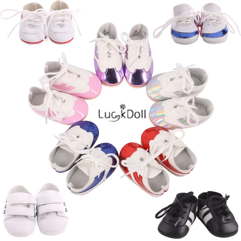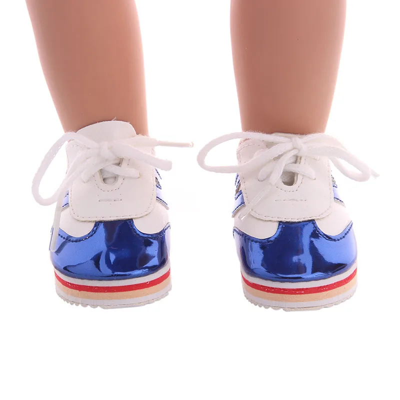 Блеск кожаная Спортивная обувь Кроссовки подходит 18 дюймов American 43 см для ухода за ребенком для мам Baby Doll, аксессуары к платью, Girl'Toys, поколение, в качестве подарка на день рождения