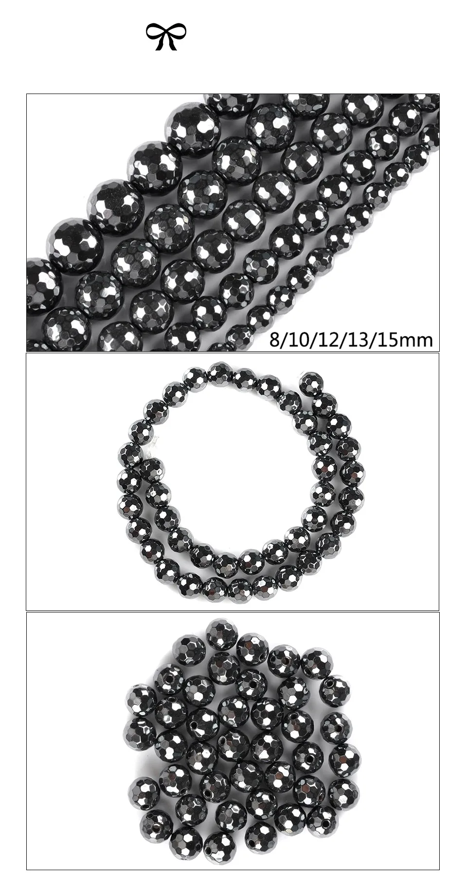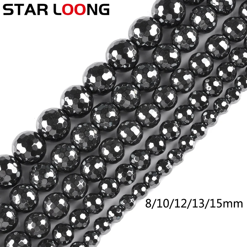 Бусина из натурального камня ААА, граненый черный гематит, 15 дюймов, 8, 10, 12, 13, 15 мм, Круглый свободный браслет