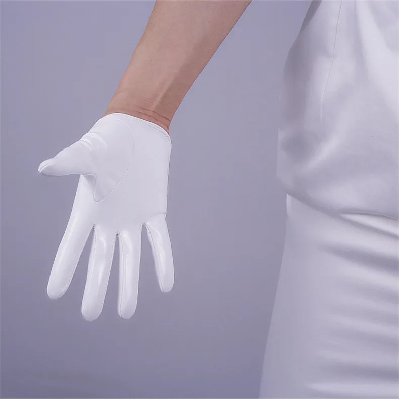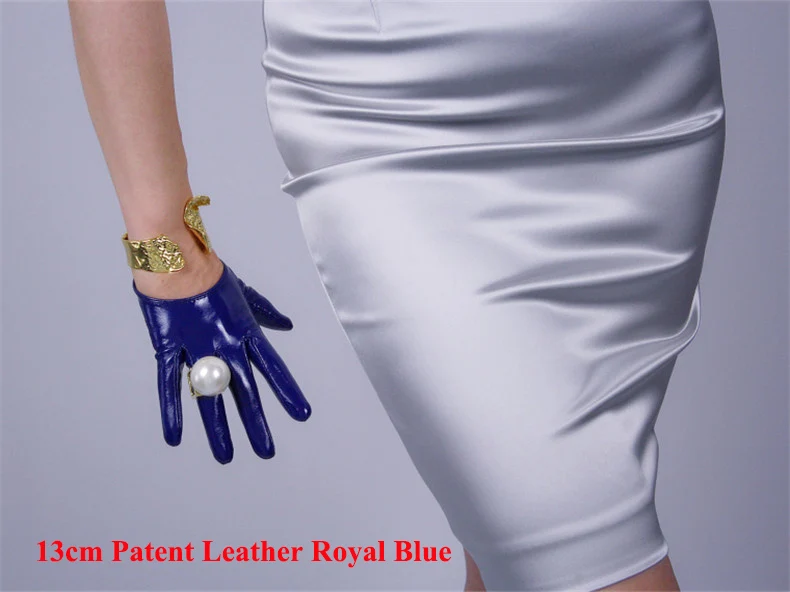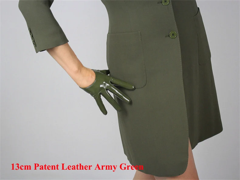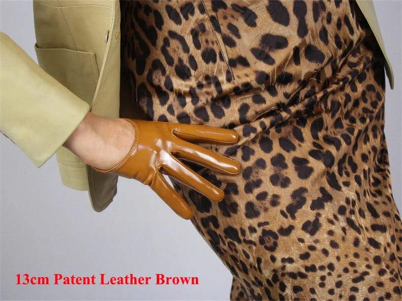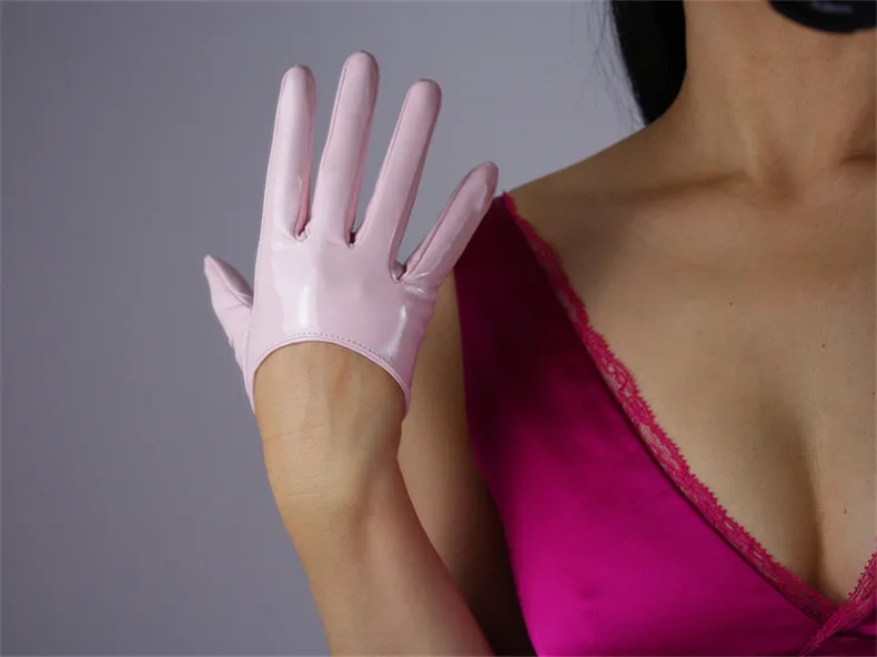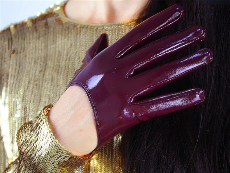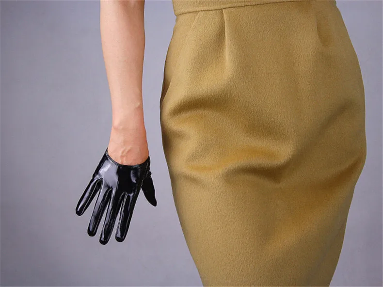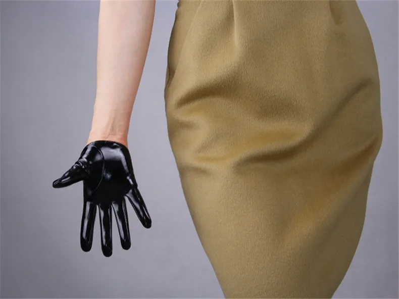 Ультракороткие перчатки из лакированной кожи, яркие черные, 13 см, WPU86