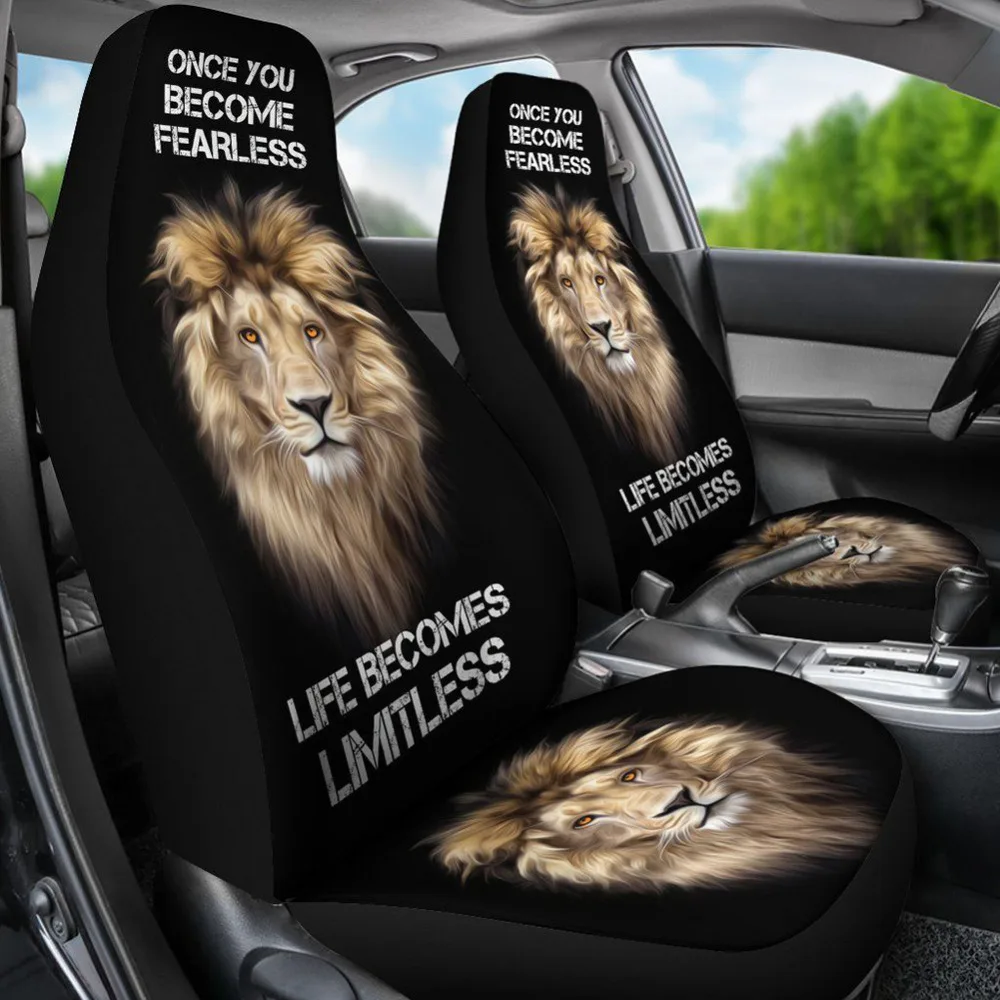 Тканевый чехол для переднего сиденья автомобиля, с принтом льва, гибридный, 2 шт.