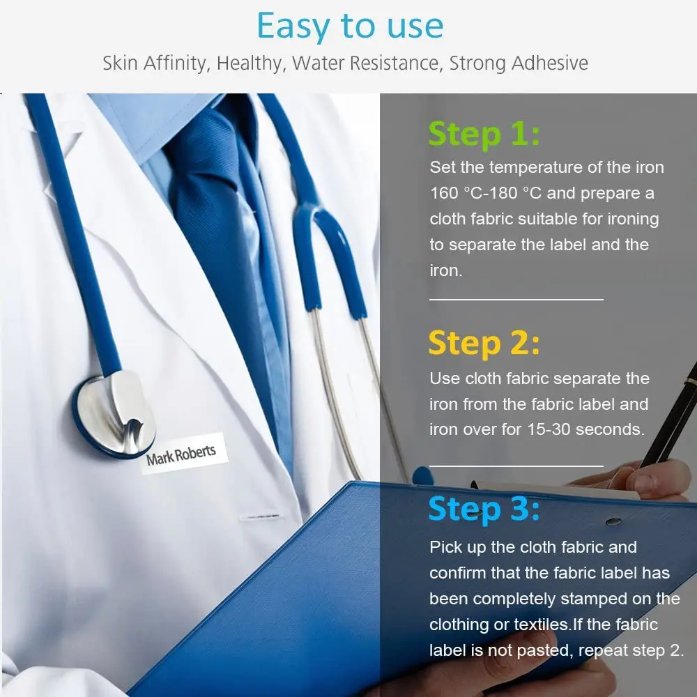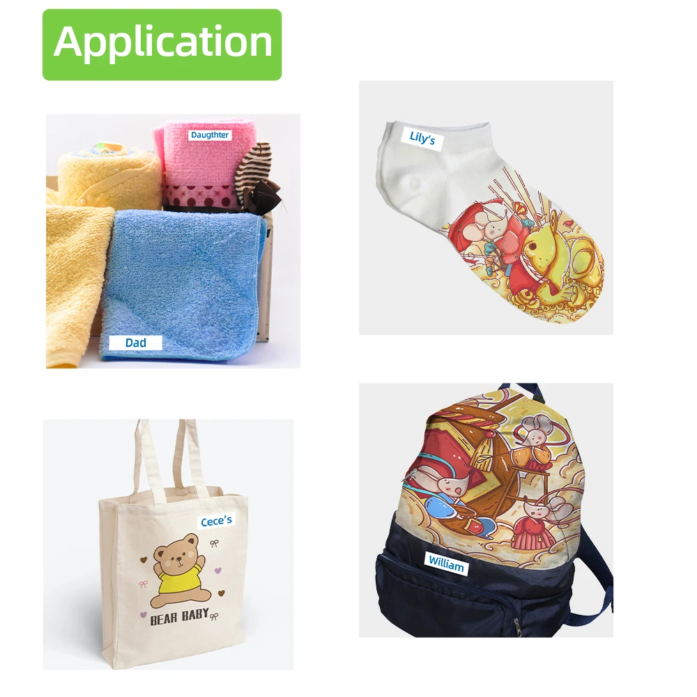 Fonctionne très bien, parfait pour étiqueter les vêtements des enfants. Pensez a utiliser un papier cuisson pour ne pas coller l'étiquette au fer. Très satisfait de mon achat.