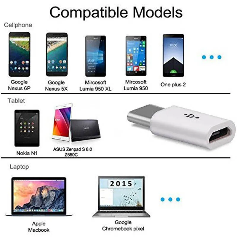 Переходник USB 3,1, USB-C Type C (штекер) на Micro USB (гнездо), 8 шт.