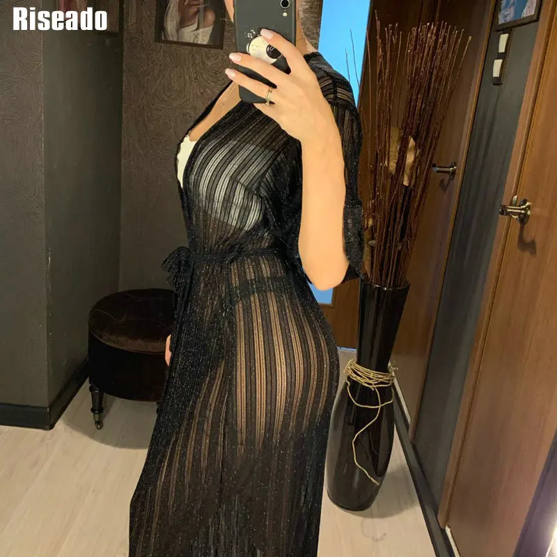 Riseado, Сетчатое кимоно, женское сексуальное бикини, накидка, открытая спереди, Пляжная туника, прозрачные женские купальники, новинка 2022, пляжная одежда с коротким рукавом