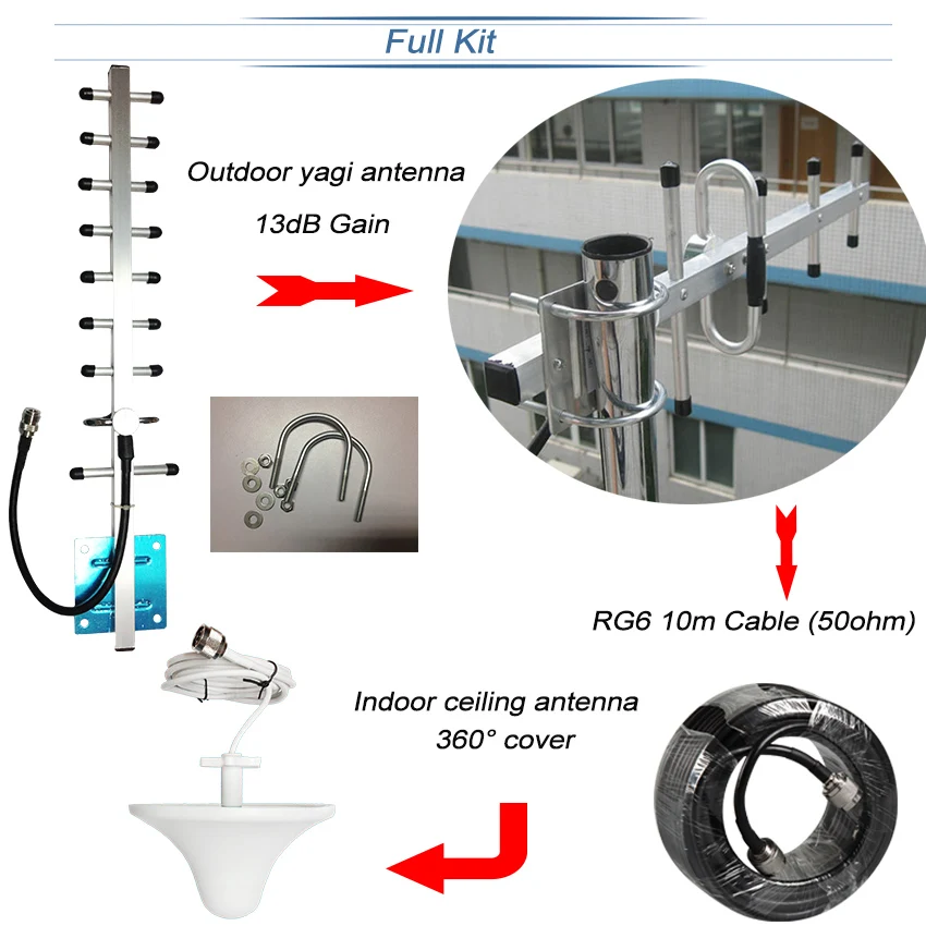 Lintratek 2G 4G 1800 МГц 70 дБ усилитель мобильного сигнала с высоким коэффициентом усиления GSM LTE DCS B3 1800 сотовый ретранслятор усилитель Yagi комплект антенн