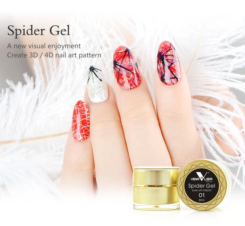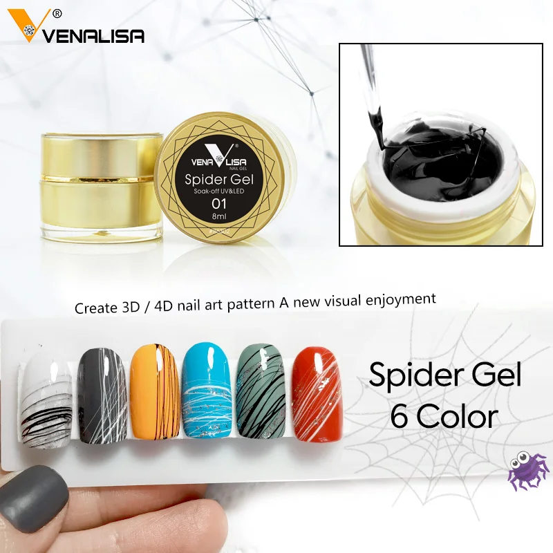 Гель для рисования VENALISA, гель-паук для рисования, дизайн ногтей, чистый цвет, удаляемый замачиванием, УФ-светодиод, 3D тиснение, желейное стекло, серебристый гель для рисования
