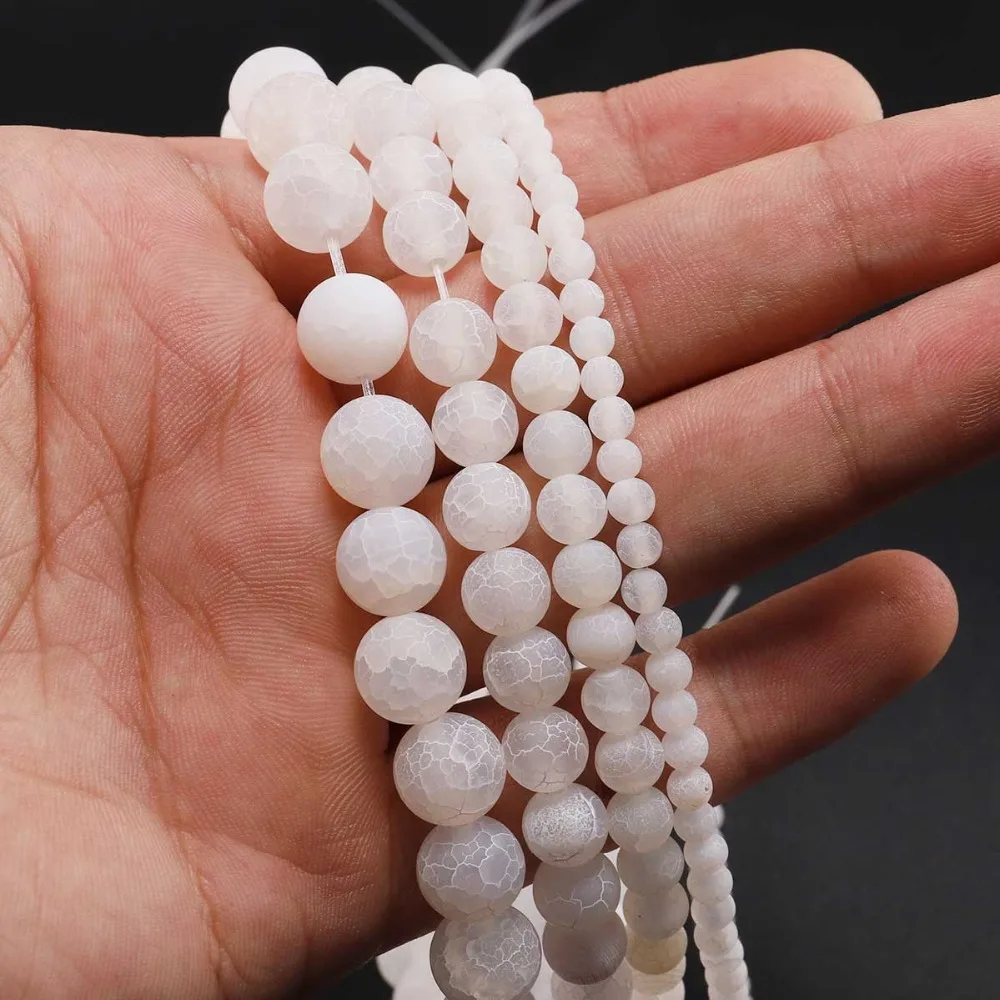 4, 6, 8, 10, 12 мм натуральный камень, морозный краб, Белый Агат, круглая разделительная бусина, для самостоятельного изготовления ювелирных изделий ожерелья, браслеты, нить