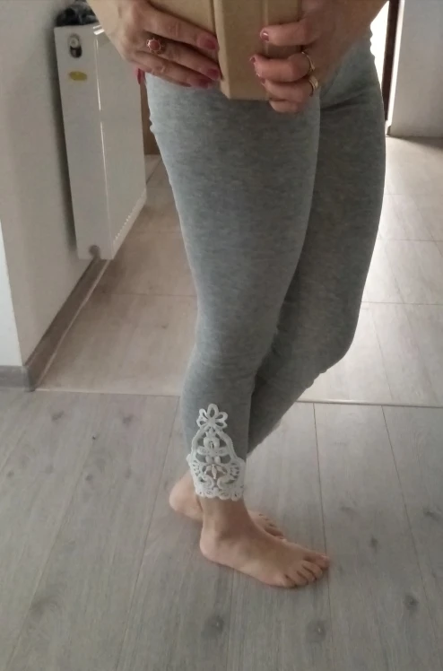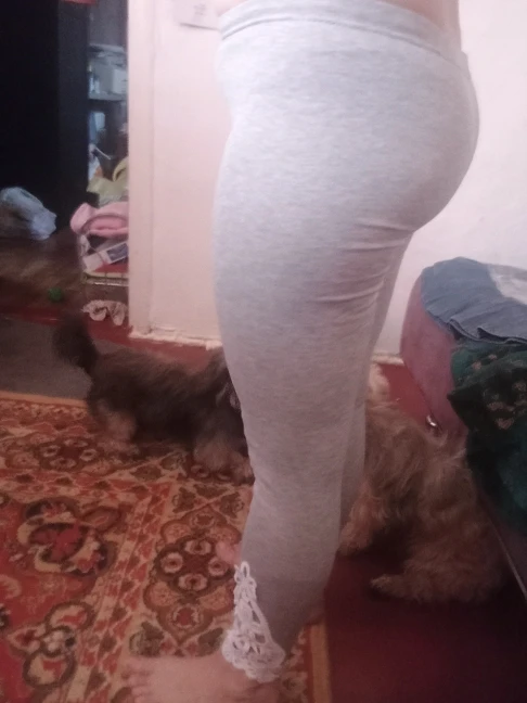 Легенды пришли в упаковке, на вид шикарные, на практике, на мне смотрятся ужасно. Ткань тоненький, лёгкий трикотаж. Швы на мотне обработаны отлично, по всей длине только там где аппликация, почему то ткань обрезана и не обработана. Талия занижена, поэтому я чувствую себя в них не комфортно. При первом приседания, вытягиваются колени. Можен с туникой или длинной футболкой будет хорошо. Посмотрим