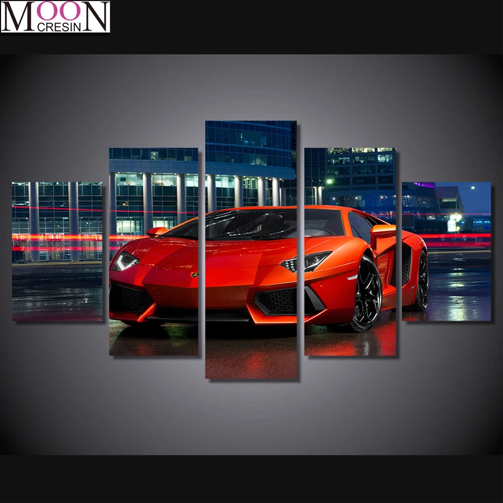 Триптих сделай сам, алмазная живопись, вышивка крестиком, Красный спортивный автомобиль, 5 шт., Алмазная мозаика сделай сам, алмазная вышивка ручной работы