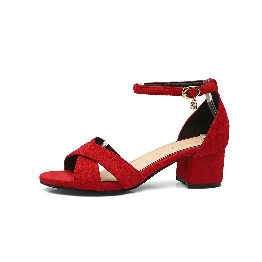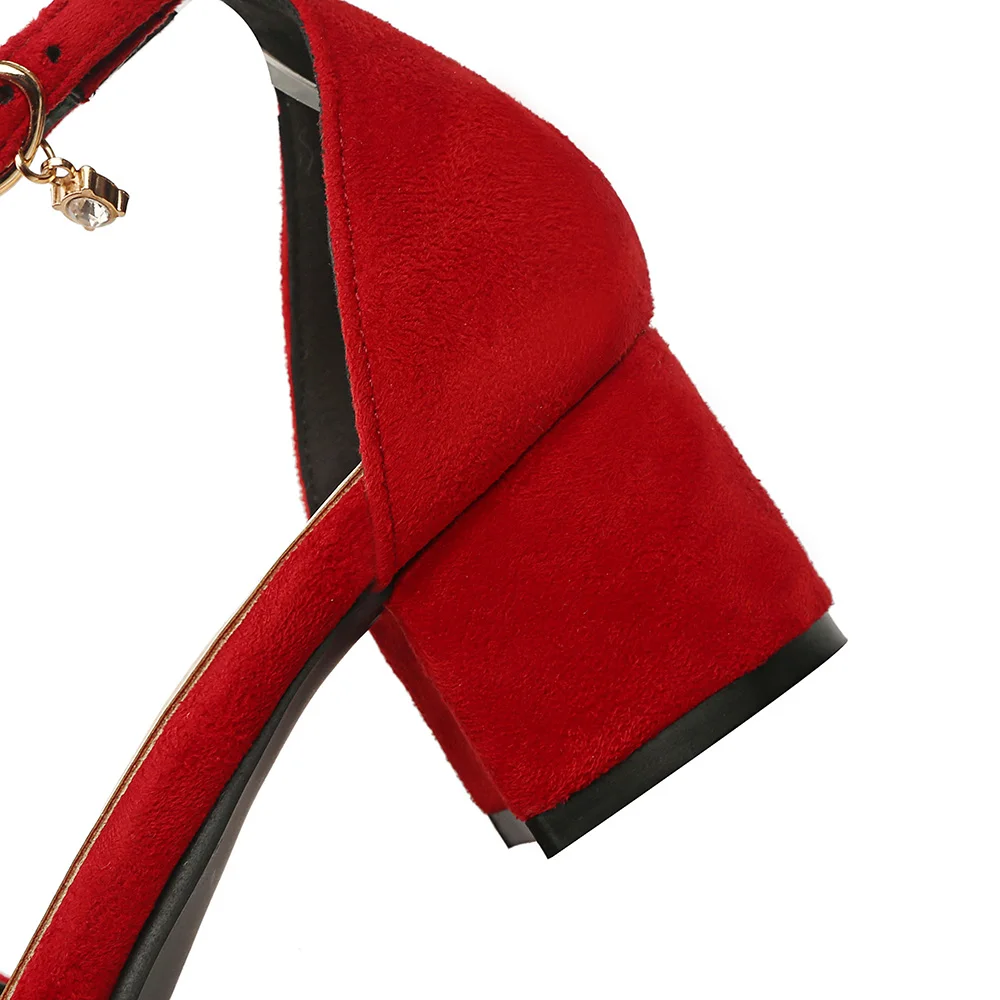 Женские модельные туфли, черные, красные, на среднем массивном каблуке, большие размеры 10, 31, 45, 47, для лета, сандалии для офиса