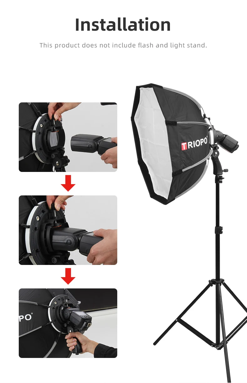 Кронштейн TRIOPO для вспышки, складной восьмиугольный софтбокс, 65 ...