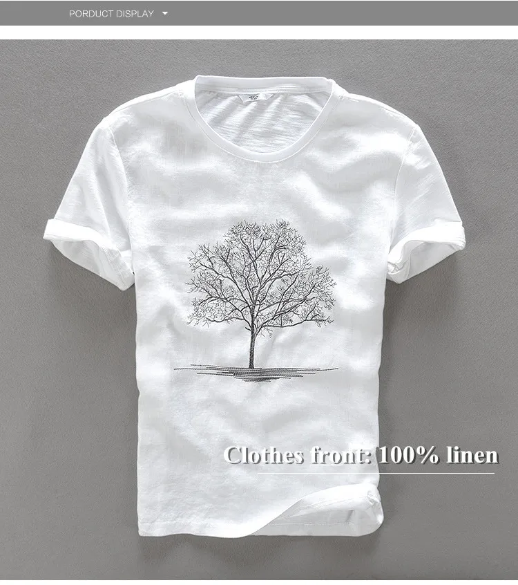 Футболка мужская льняная с вышивкой, дизайнерская Повседневная рубашка с круглым вырезом и коротким рукавом, топ, черный цвет
