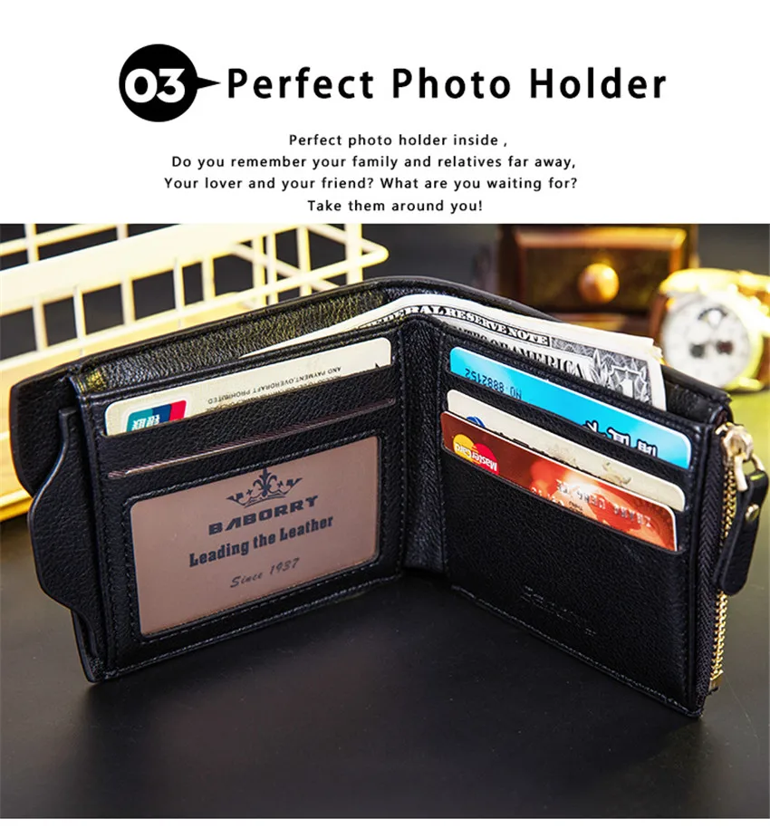 Baborry твердый RFID-защита мужской кожаный кошелек съемный блокиру...