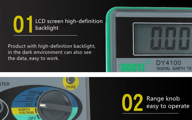 Мегомметр 0-2000 Ом, измеритель сопротивления заземления DY4100