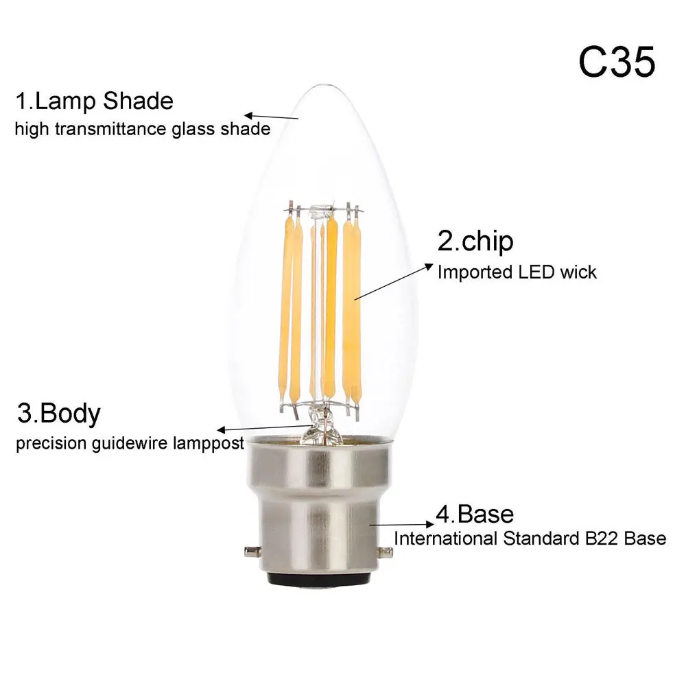 Лампа накалисветодиодный светодиодная, 2 Вт, 4 Вт, 220 В, C35