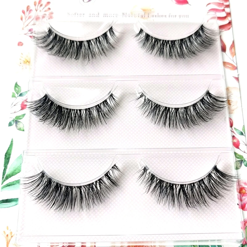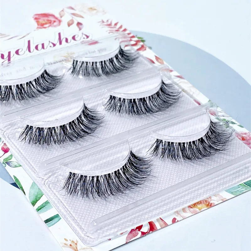 Новые Накладные ресницы, 3 пары, натуральные Прозрачные терьер ручной работы, накладные ресницы, Короткие накладные ресницы для макияжа