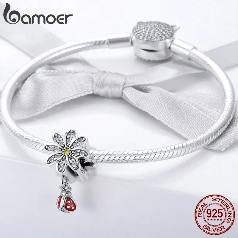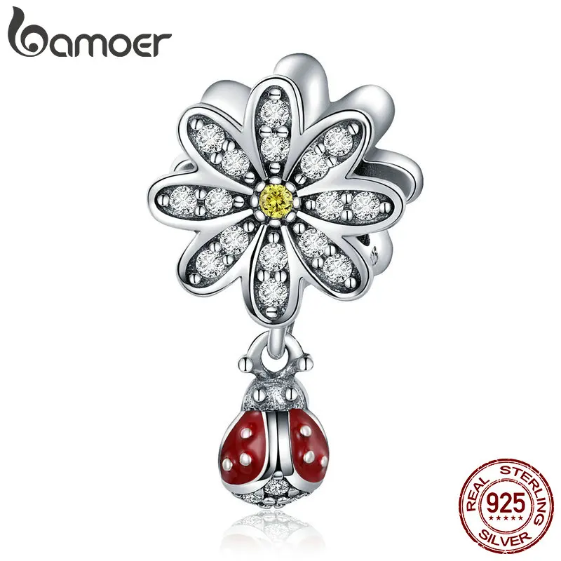 Кулон из серебра 925 пробы с фианитами, Божья коровка