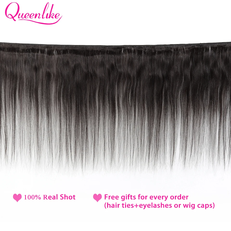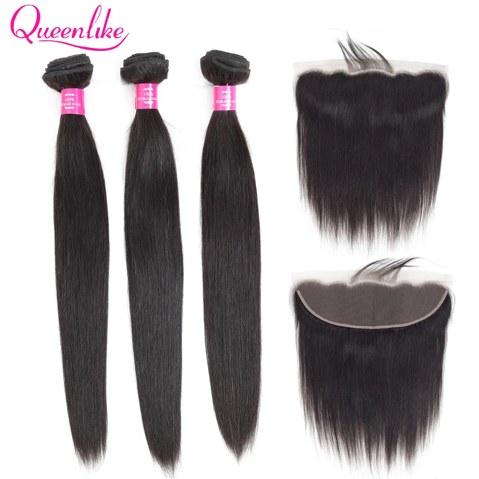 QueenLike продукты перуанские кружевные фронтальные закрытия пряди 100% человеческие волосы не Реми 3 4 прямые пряди с фронтальной