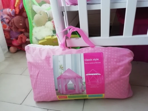 В принципе палатка шикарная, но вот насчёт металического кронштейна либо нае, либо перепутали, так что проще сразу обычную брать. Конструкция из пластика в принципе нормальная, но часто из крыши может вылезти палка при сильном задевании, так что на улице ребёнку её можно будет только под крышей поставить, доставка 2 мес