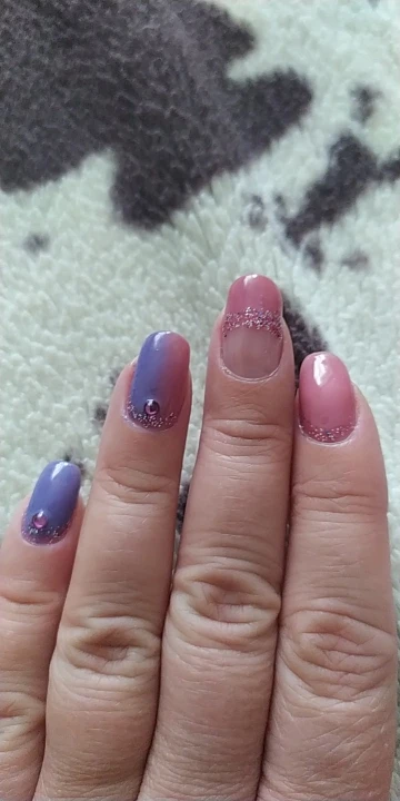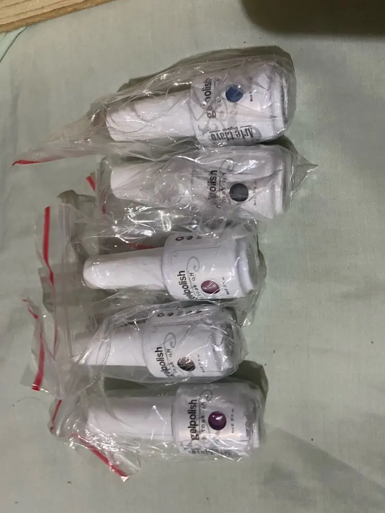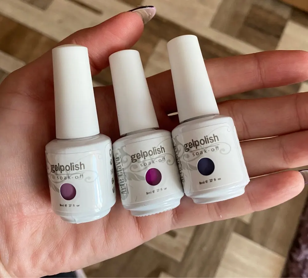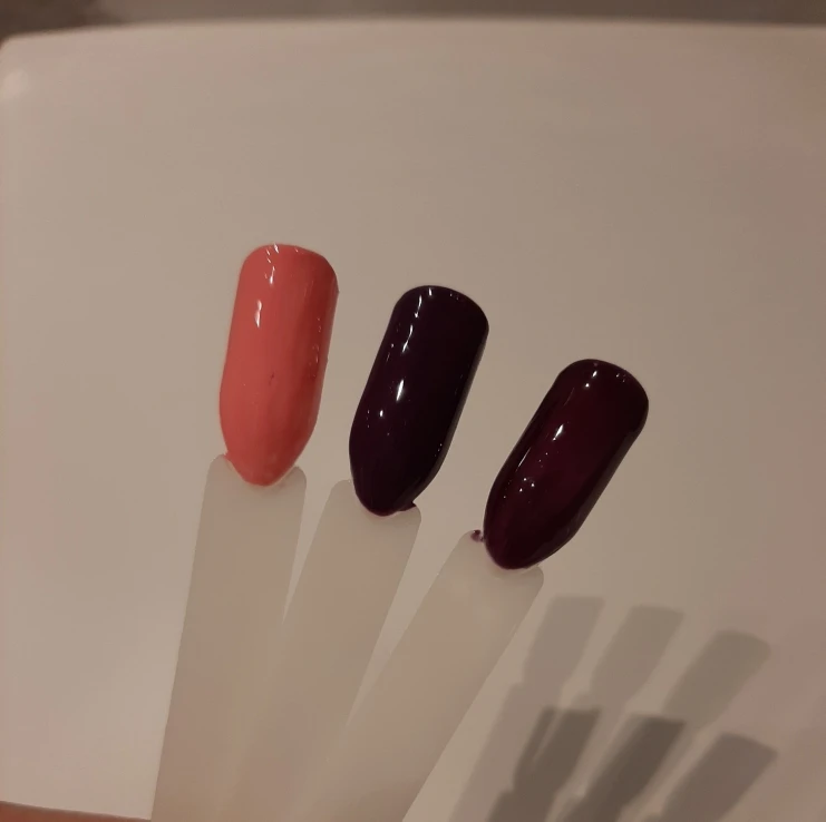 Товар пришел в хорошей упаковке. Посылка шла чуть больше месяца. Фиолетовый и фиолетовый хамелион мне понравилист, а вот розовый нет. Розовый ложиться какими-то не красивыми волнами. Возможно это только на типсах, на ногтях еще не пробовала. Допишу когда буду использовать