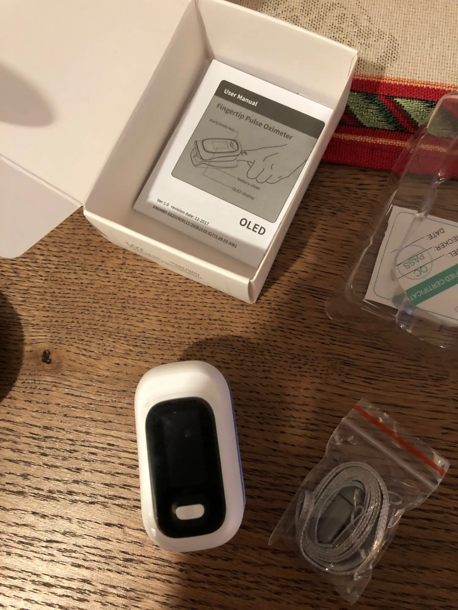 Прибор рабочий. Показывает пульс и уровень кислорода. Можно на дисплее менять положение цифр: либо справа-слева, либо верх-низ. Сам отключается после снятия с пальца. В целом показался довольно приличным. В комплекте был чехол для хранения, пришел в фирменной коробочке и внутри в блистере. Спасибо продавцу.