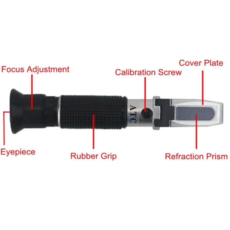 3. Очистите призму мягкой тканью, затем поместите 2-3 капли жидкого образца для проверки на Призме. Затем закройте крышку и мУбедитесь, что вода распределяет призму без каких-либо пузырьков воздуха или сухих пятен. Подождите около 30 секунд, чтобы показания стабилизировались.Выровняйте призму в сборе с источником светильник. Посмотрите на окуляр, и вы можете получить чтение.