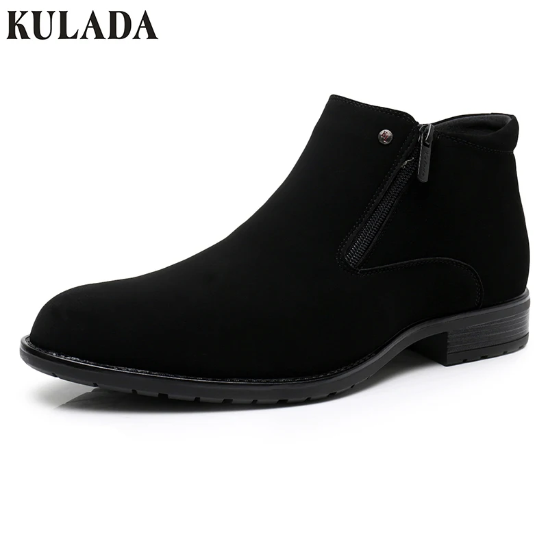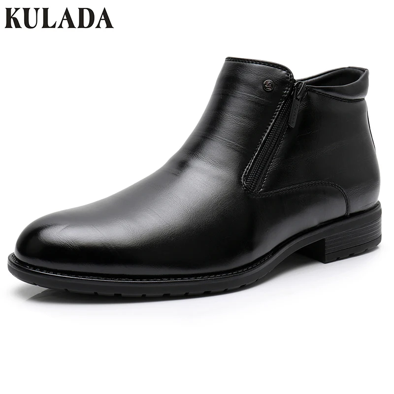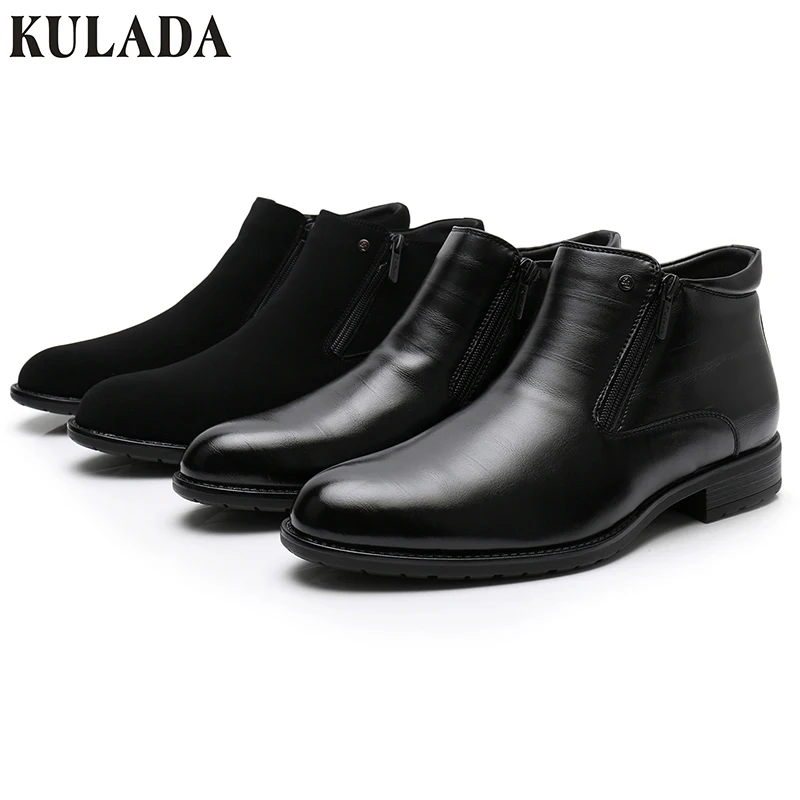 Мужские ботинки из искусственной кожи KULADA, классические ботинки из искусственной кожи, двойная молния, ботинки с искусственным мехом сбоку, зимняя обувь
