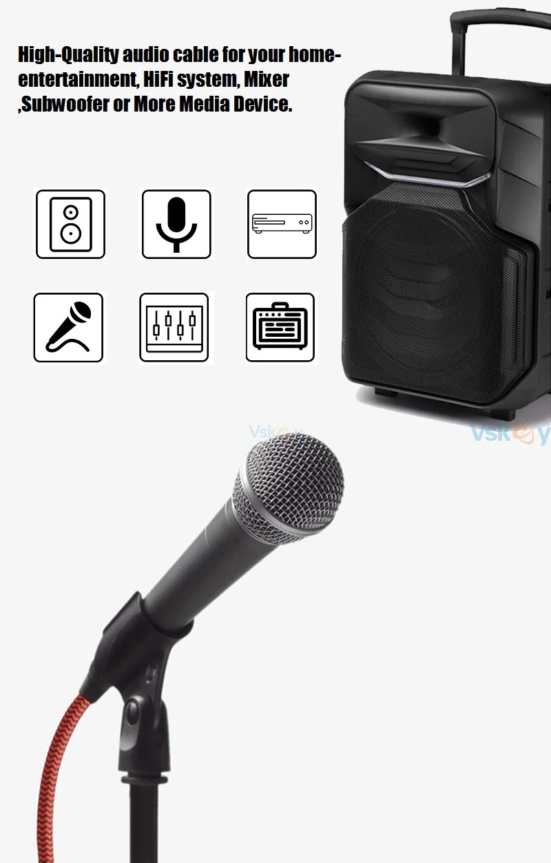> Кабель основной Проводник:Благодаря проводнику из бескислородной меди, обеспечивает отличную проводимость и оптимальную передачу сигнала. Высококачественная аудиопередача и улучшает звук. Аудиокабель подходит для вашего дома-развлечения, HiFi системы, миксера, сабвуфера, динамика, музыкального инструмента или более аудиоустройства.