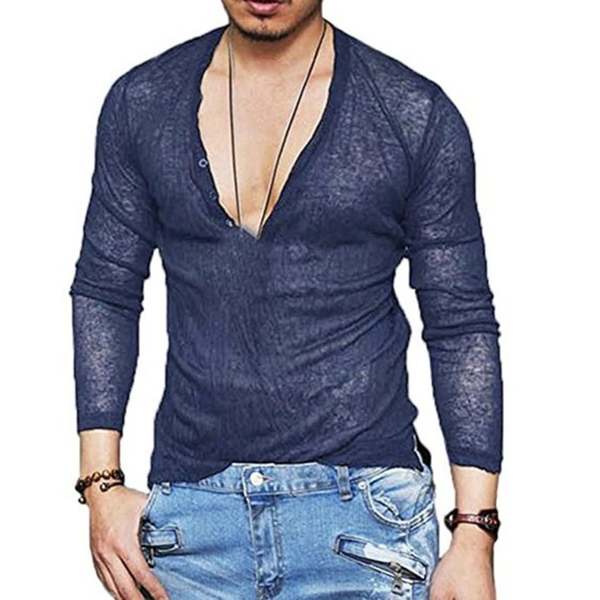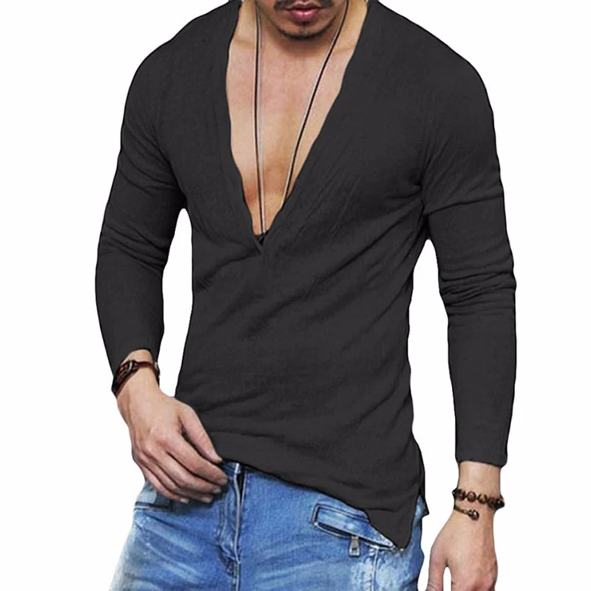 Футболка мужская облегающая однотонная, дышащая стильная рубашка с глубоким V-образным вырезом, модная хипстерская уличная одежда, топ, на лето