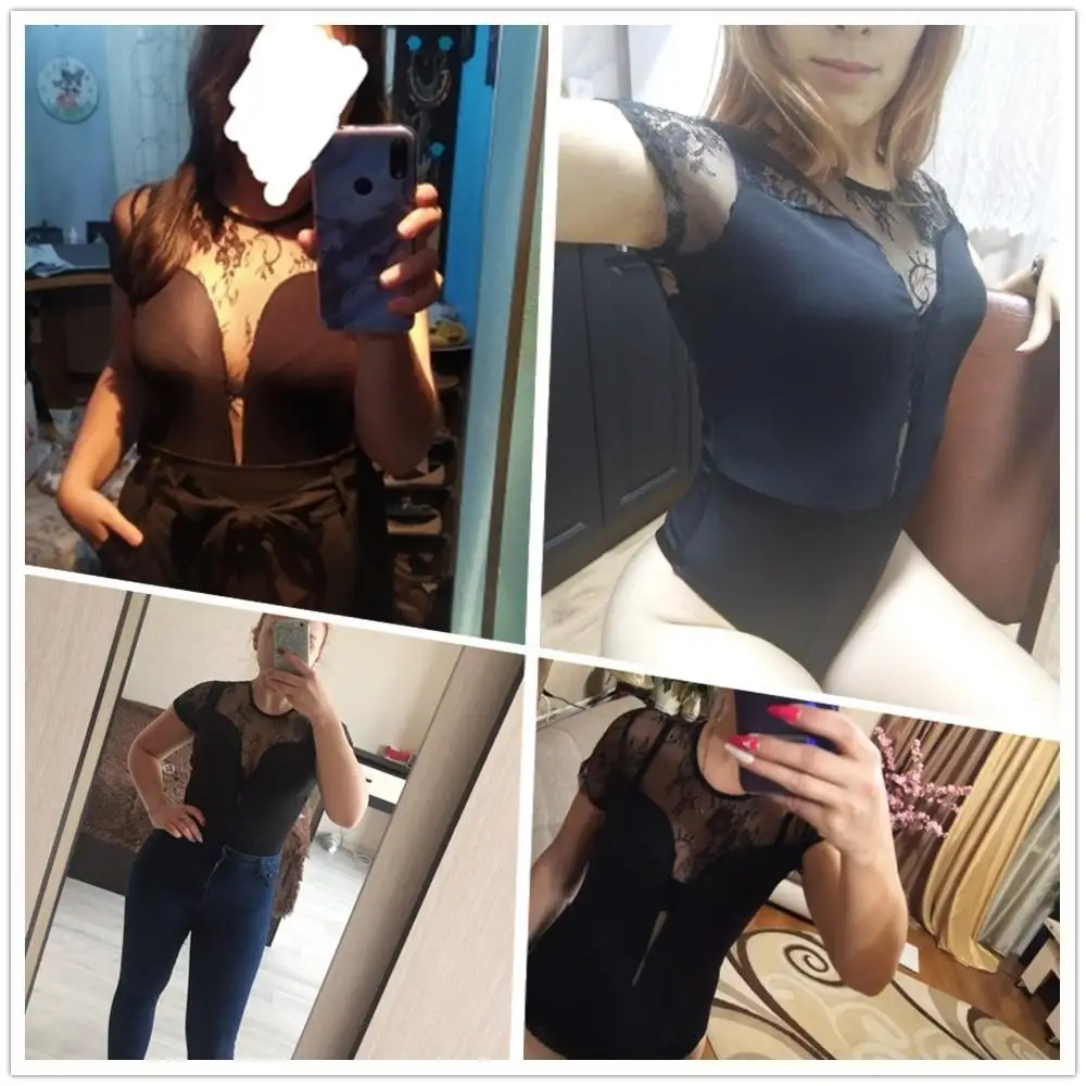 Боди женское кружевное с коротким рукавом, черное, лето 2020