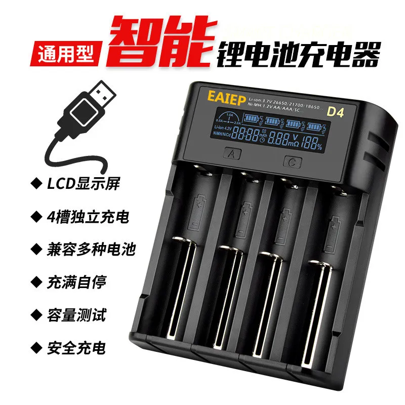 Новое умное зарядное устройство EAIEP, 1,2 в, 3,7 в, 3,2 в, 3,85 В AAAA, 18650, 18350, 26650, 10440, 14500, для литий-ионных, никель-металлогидридных аккумуляторов