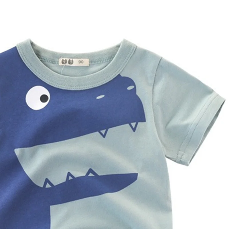 От 2 до 8 лет футболки для мальчиков и девочек с мультяшным динозавром, Летний Детский костюм, хлопковые топы с коротким рукавом, модные футболки для мальчиков