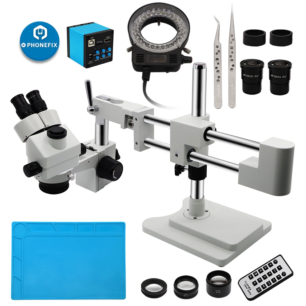 3.5X-90X тринокуляр стерео микроскоп с 14/16/20MP HDMI Камера, 3.5X-90X ремонт телефона PCB ювелирные изделия микроскоп с двойной подставка для стрелы, этот стерео микроскоп для ремонта печатных плат предназначен для того, чтобы выдерживать строгое Промышленное использование, этот профессиональный стерео микроскоп с зумом отлично подходит для наблюдения за печатной платой за мобильный телефон, электрического solding, carve и так далее.