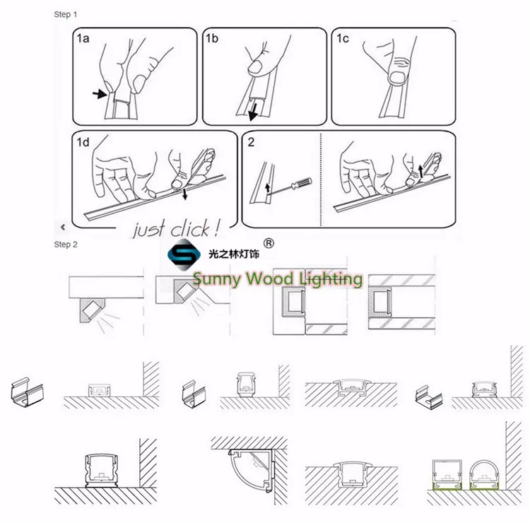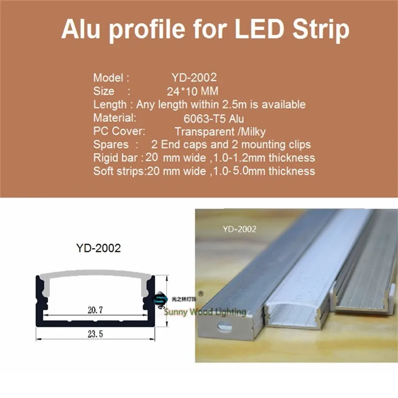 1. Корпус светодиодного алюминиевого профиля: 50 см/комплект x2-20set