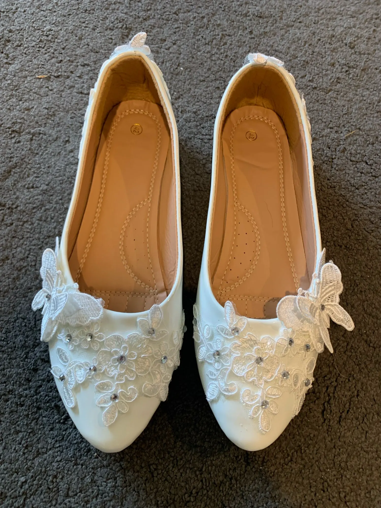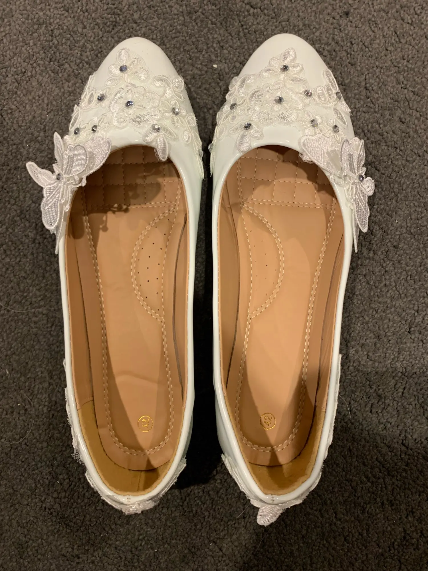 Sorbern/белые туфли с бисером и ремешком на щиколотке с милыми цветами