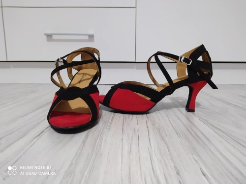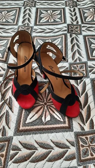 туфли брала для занятий аргентинским танго. не писала отзыв сразу,чтобы дать туфелькам себя проявить и показать в танце. первое впечатление, конечно же, полный восторг!) давно хотела красные туфли)) сочетание красного и чёрного цветов очень удачное по поводу материалов изготовления есть свои нарекания: красный материал замша/фланель очень быстро заляпался, черные вставки вообще из какого-то странного материала. при носке, тренировках материал на ступне очень быстро разносился, хотя эта часть и по началу тоже была не в обтяг. по сути туфли на полную ногу (24,5 ОБС). ремешки держат плотно ножку, проблем нет. Пяточка мягкая, красивая, и я ещё немного не поняла удобно мне с такой пяточной или нет. Подошва замша. По сравнению с кожей, наааааамного комфортнее. танцоры поймут. ВАЖНО каблук 10 см. лично для меня высота удобная, но он как будто бы уходит под ступню. то ли непривычно, то ли всё таки создаёт вариант неустойчивости. Хотя в целом для тренировочных занятий туфли очень нравятся