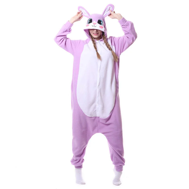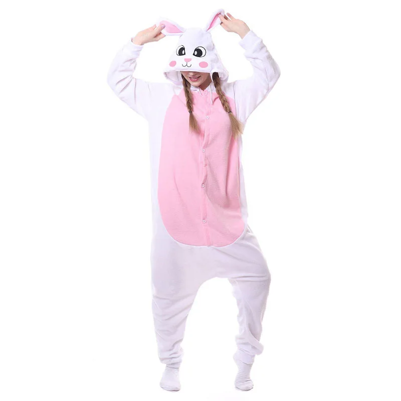 6 моделей кроликов, милые кигурумис, розовые, белые флисовые пижамы с животными, костюм кролика, карнавальный праздничный костюм, зимняя одежда для сна