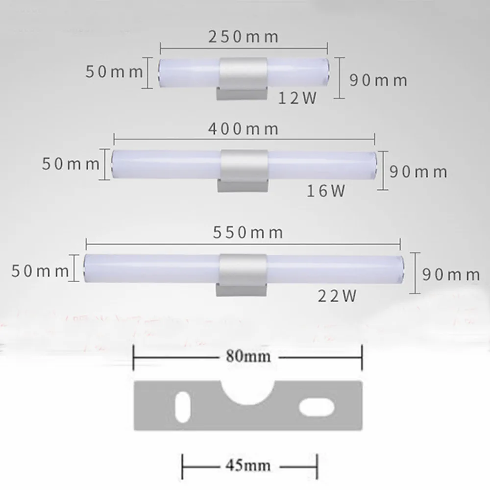 Современные светодиодные Настенные светильники для ванной комнаты, зеркальный светильник, 12 Вт, 16 Вт, 22 Вт, настенное бра из акриловой трубки, осветительные приборы для макияжа