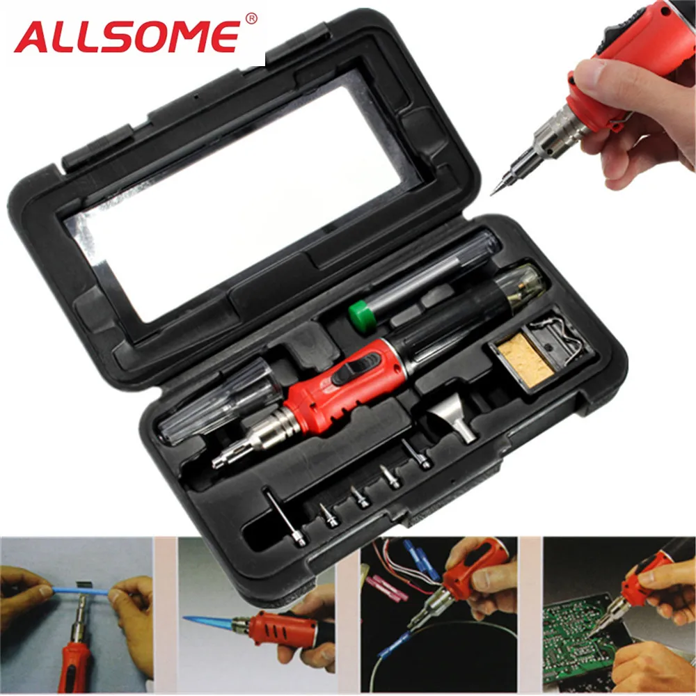 ALLSOME HS-1115K 10 в 1 сварочным комплектом удар фонарь профессиональный бутан факел зажигалки припой инструменты HT1380