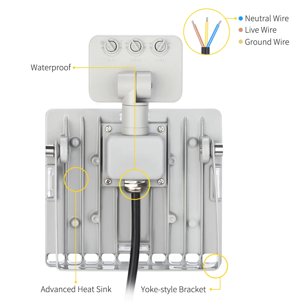1) Материал: Высокопрочный алюминий, пластик2) Напряжение: 110 В переменного тока~ 260V3) Потребляемая мощность: 30 Вт4) Цвет света:Холодный белый (6000K-6500K) с серым корпусом