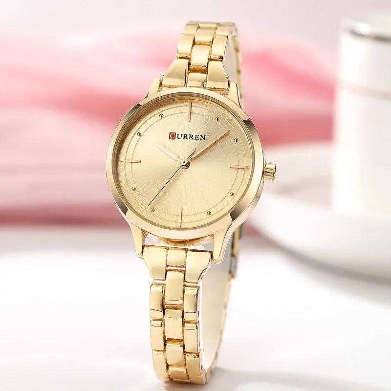 Часы CURREN женские из нержавеющей стали, роскошные модные золотист...