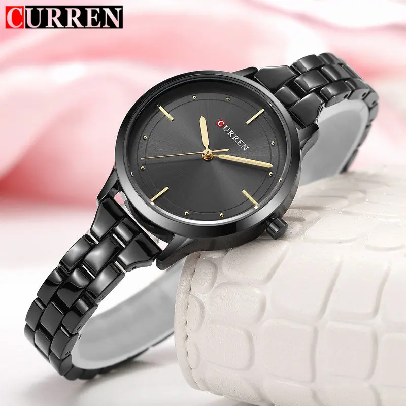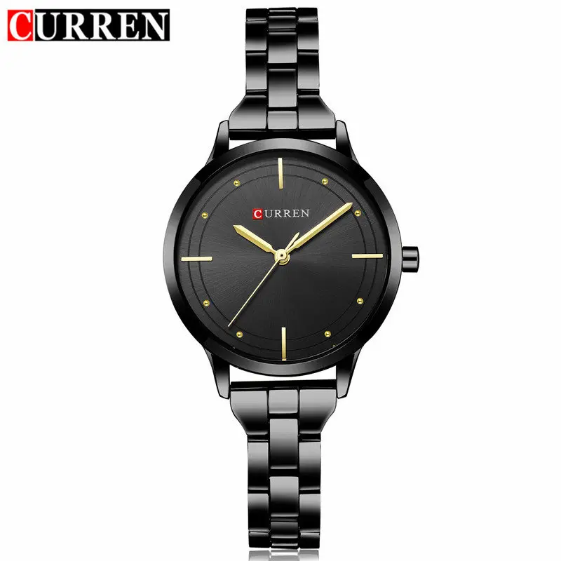 Часы CURREN женские наручные с черным ремешком, модные брендовые Роскошные ювелирные украшения, 2018