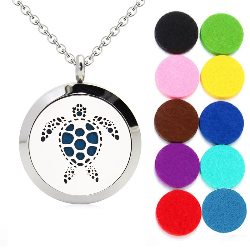 Кулон женский из нержавеющей стали с 10 подставками, ювелирное изделие с цепочкой и подвеской в виде черепахи, с эфирным маслом для ароматерапии, подарок, 25 мм