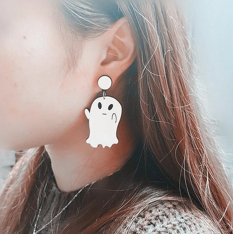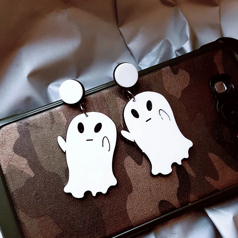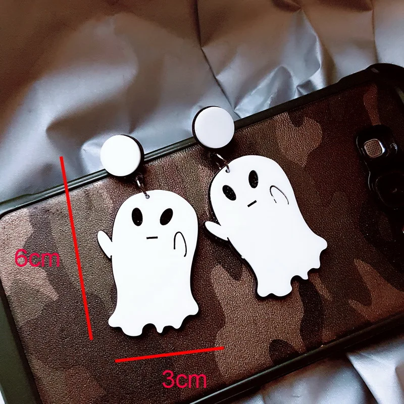 Серьги-подвески унисекс, акриловые, белые, в виде призраков на Хэллоуин, 2018